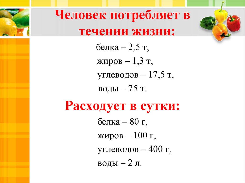 Человек потребляет втечении жизни: