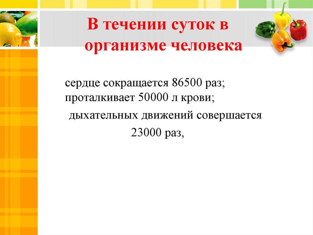 В течении суток ворганизме человека