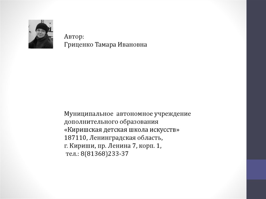 Презентацию подготовила и провелаГриценко Тамара Ивановна, преп. ИЗО