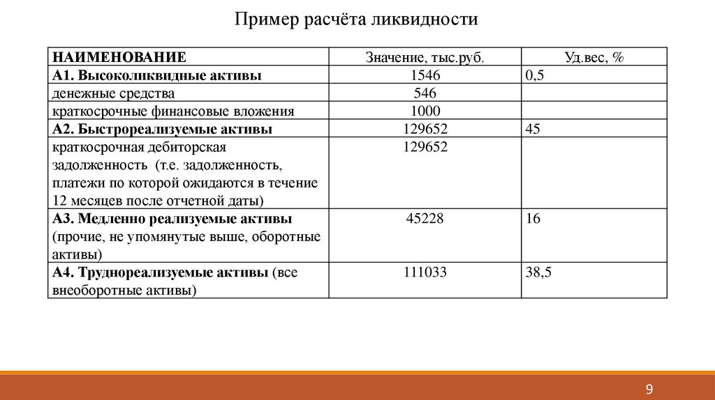 Пример расчёта ликвидностиНАИМЕНОВАНИЕ