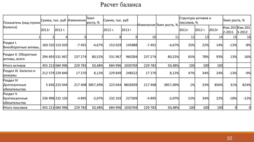 Расчет балансаПоказатель (код строки