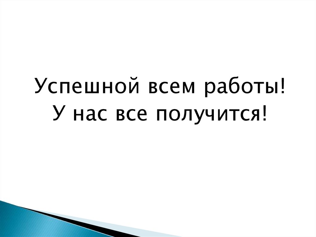 Успешной всем работы!У нас все получится!
