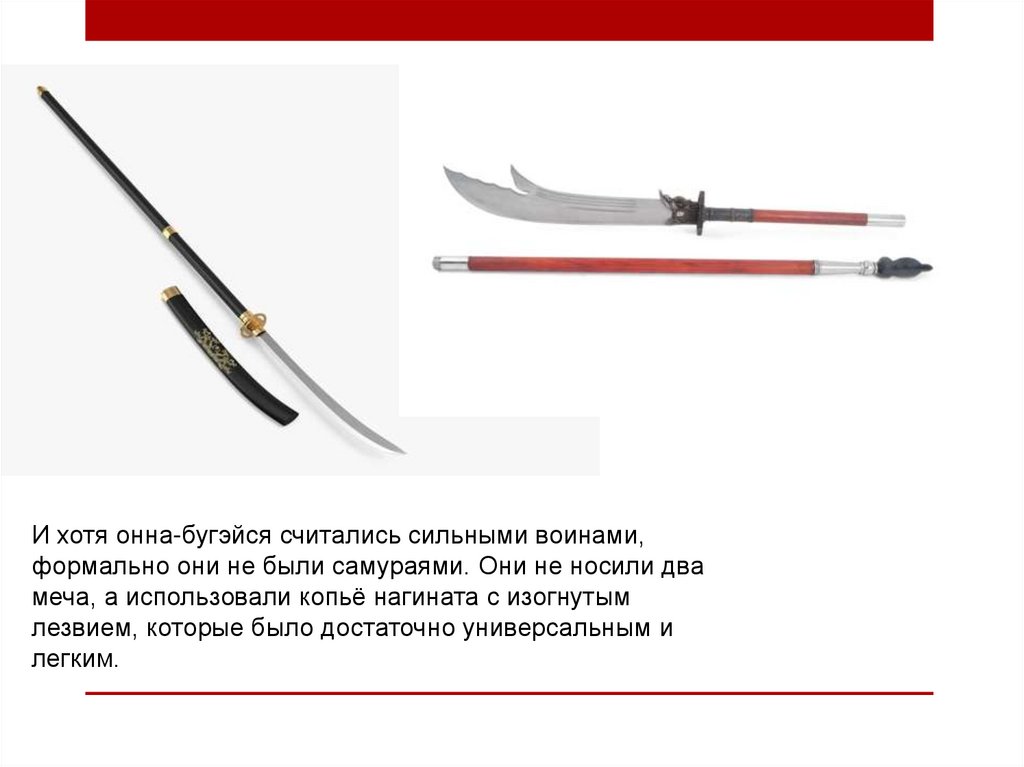 меча, а использовали копьё нагината с изогнутым
