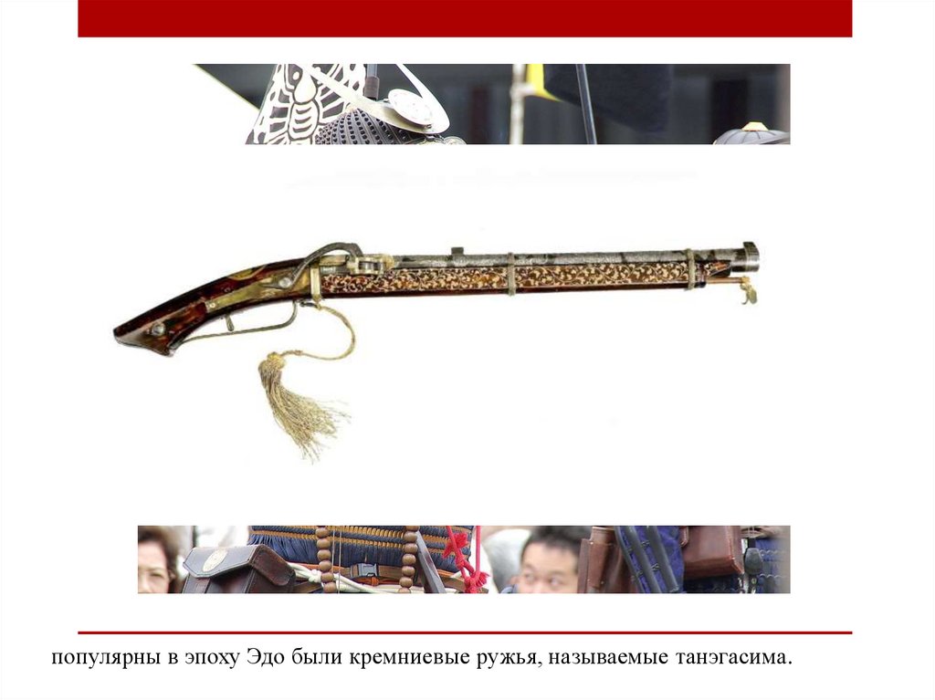 популярны в эпоху Эдо были кремниевые ружья, называемые танэгасима.17.