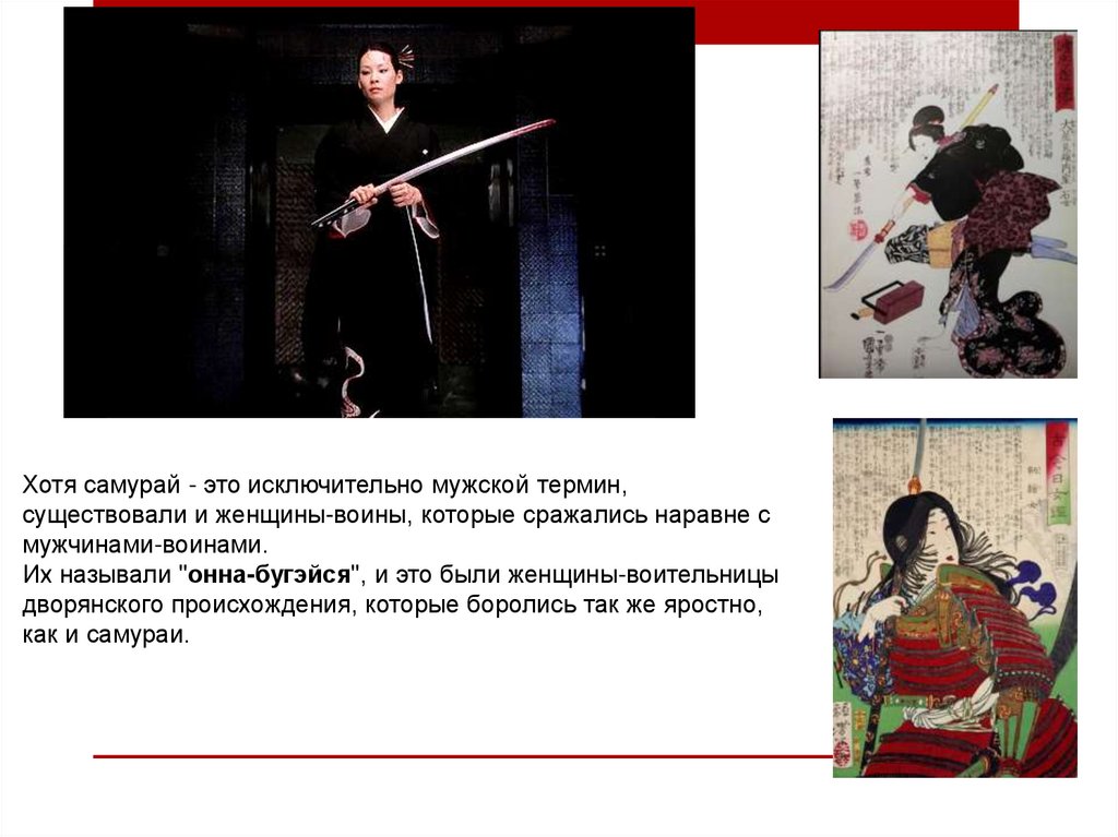 Хотя самурай - это исключительно мужской термин,существовали и женщины-воины, которые сражались наравне с