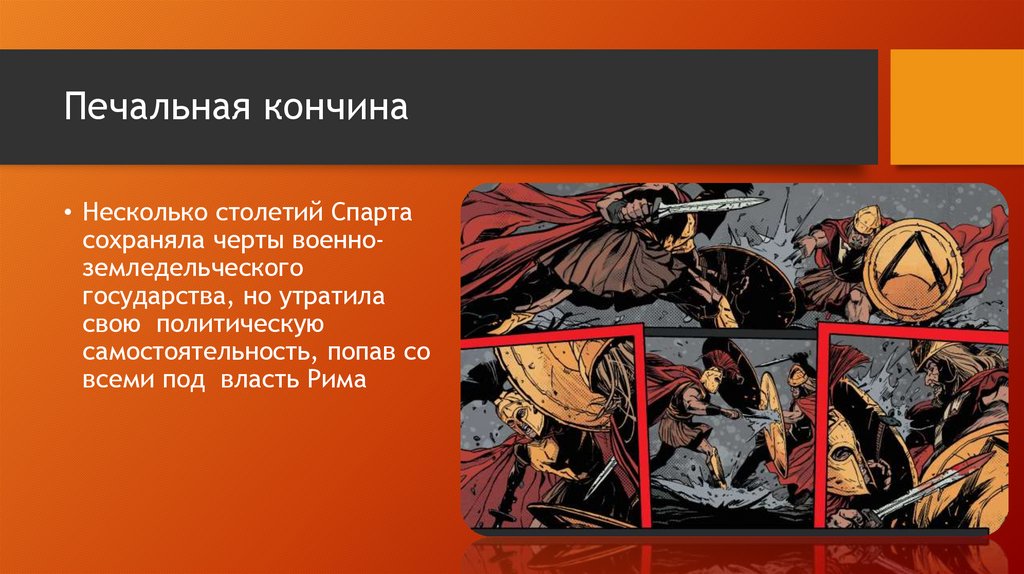 • Несколько столетий Спартасохраняла черты военноземледельческого