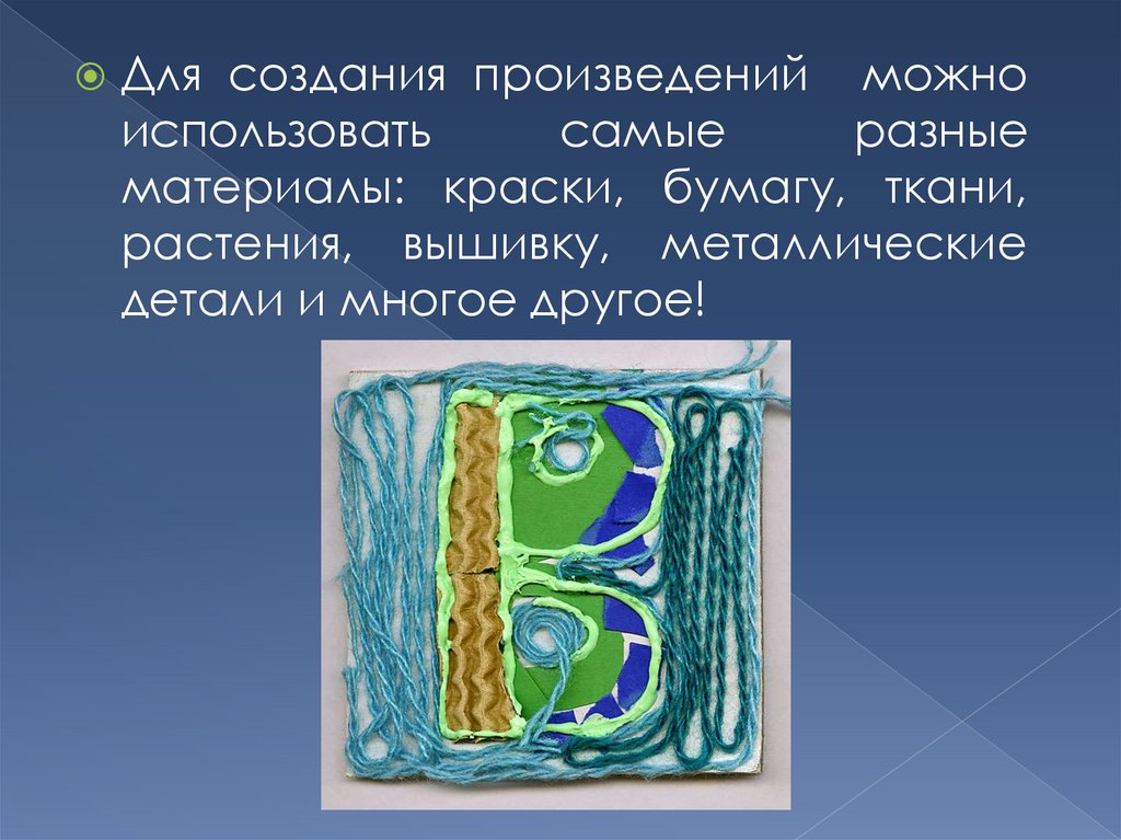 материалы: краски, бумагу, ткани,