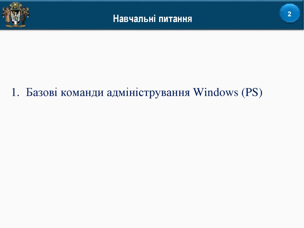 Навчальні питання1. Базові команди адміністрування Windows (PS)
