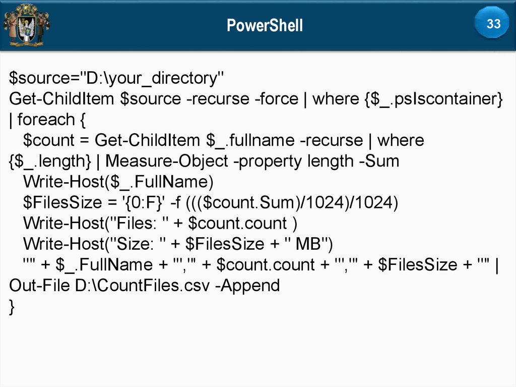 '"' + $_.FullName + '","' + $count.count + '","' + $FilesSize + '"' |