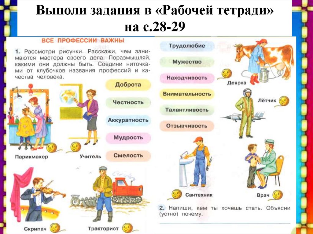 Выполи задания в «Рабочей тетради»на с.28-29