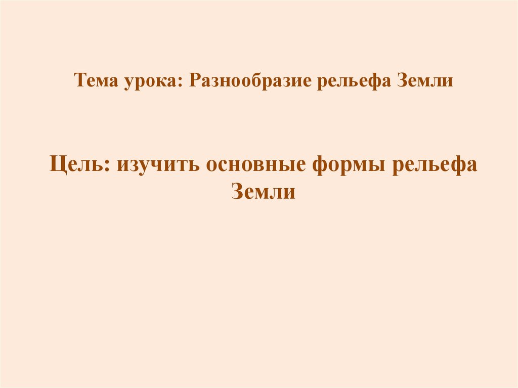 1. Тема урока: Разнообразие рельефа Земли