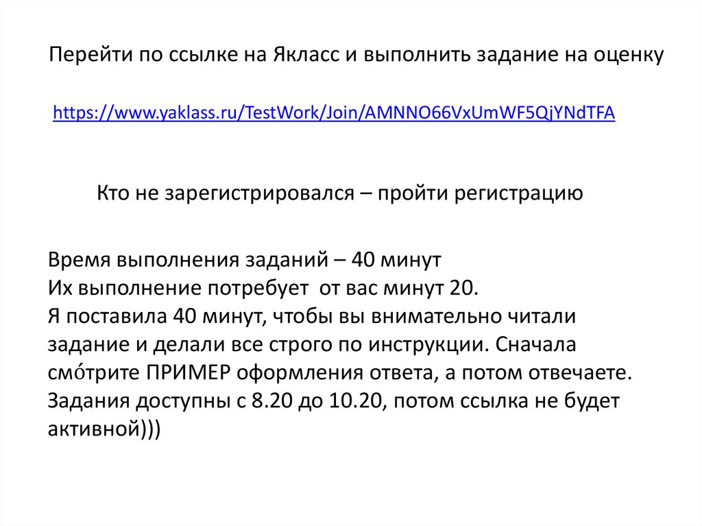 Задания доступны с 8.20 до 10.20, потом ссылка не будет