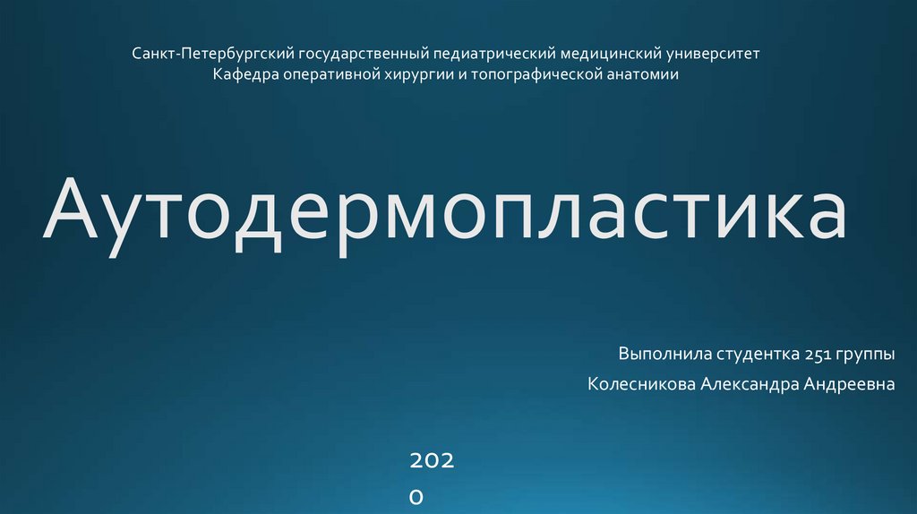 Санкт-Петербургский государственный педиатрический медицинский университетКафедра оперативной хирургии и топографической анатомии