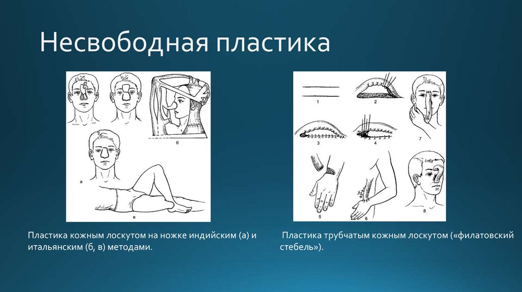 Несвободная пластикаПластика кожным лоскутом на ножке индийским (а) и