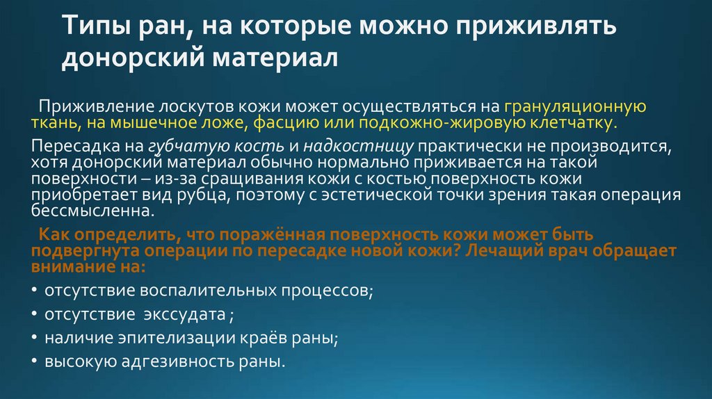 Приживление лоскутов кожи может осуществляться на грануляционную