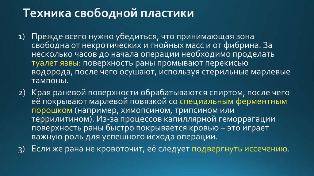 Техника свободной пластики1) Прежде всего нужно убедиться, что принимающая зона