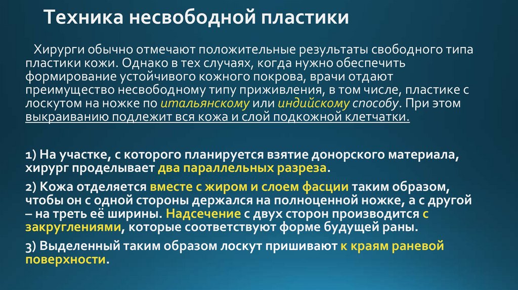 Техника несвободной пластикиХирурги обычно отмечают положительные результаты свободного типа