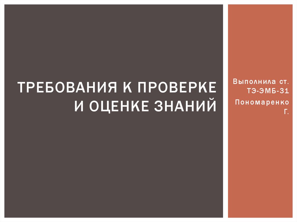 ТРЕБОВАНИЯ К ПРОВЕРКЕИ ОЦЕНКЕ ЗНАНИЙ