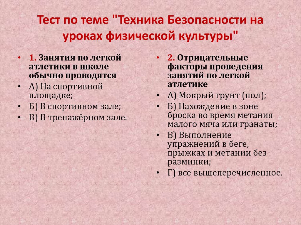 1. Тест по теме "Техника Безопасности на уроках физической культуры"