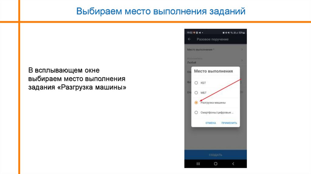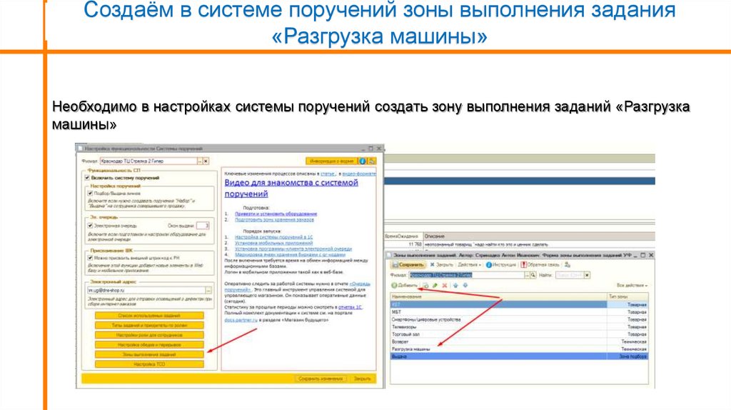 Создаём в системе поручений зоны выполнения задания«Разгрузка машины»