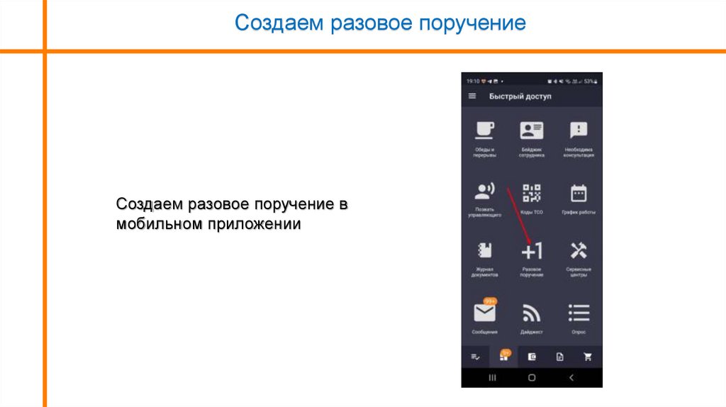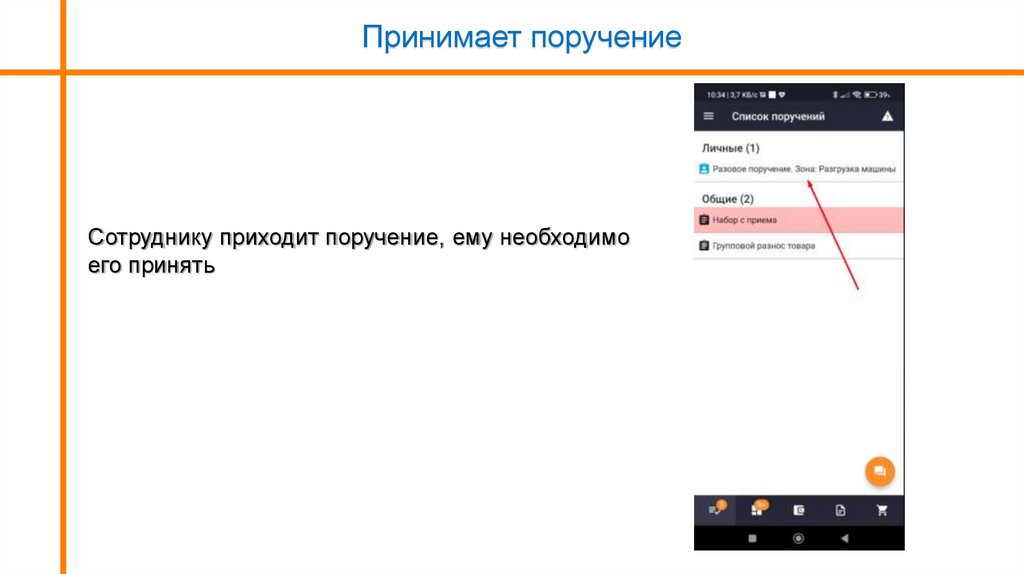 Принимает поручениеСотруднику приходит поручение, ему необходимо