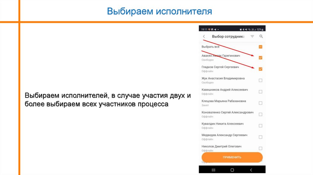 Выбираем исполнителяВыбираем исполнителей, в случае участия двух и