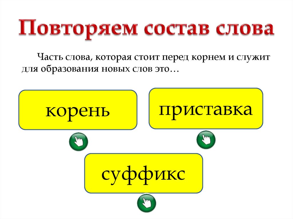 Часть слова, которая стоит перед корнем и служитдля образования новых слов это…