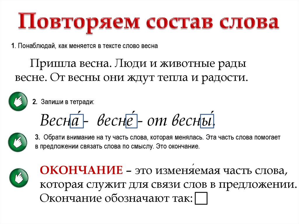 3. Обрати внимание на ту часть слова, которая менялась. Эта часть слова помогает