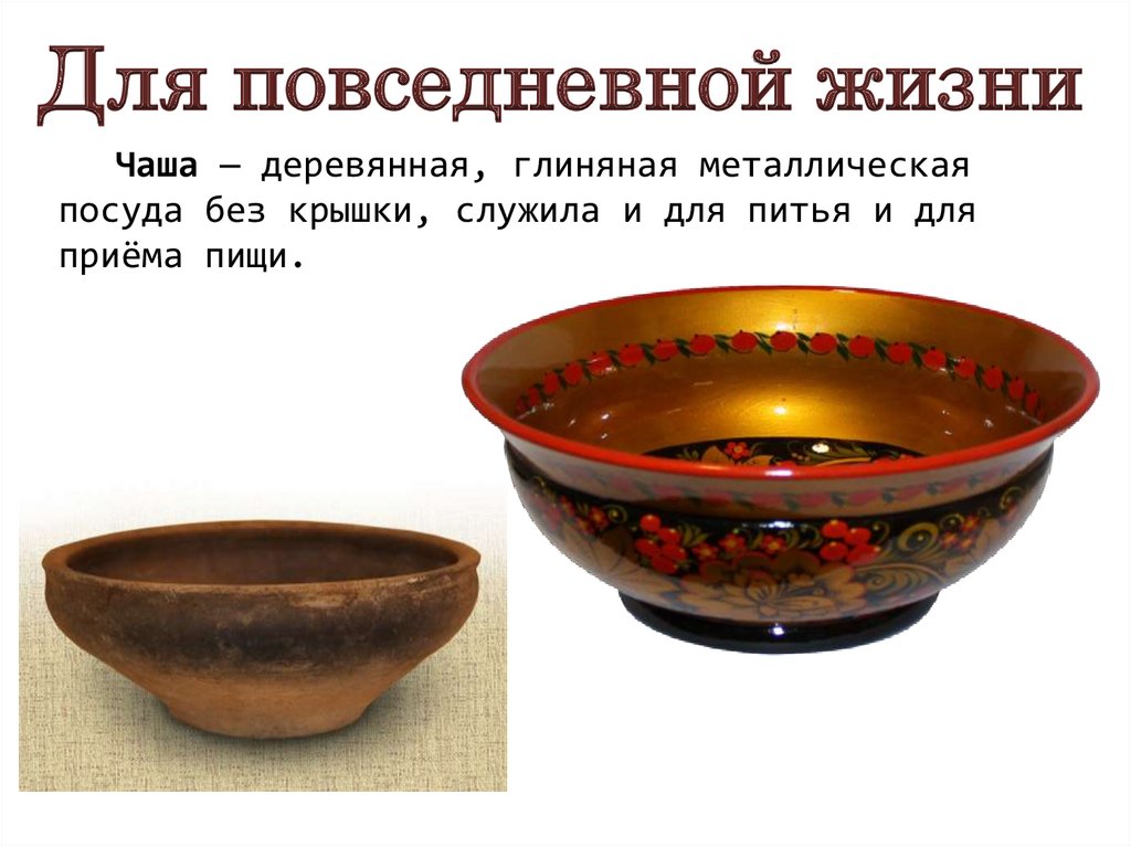 Для повседневной жизниЧаша — деревянная, глиняная металлическая