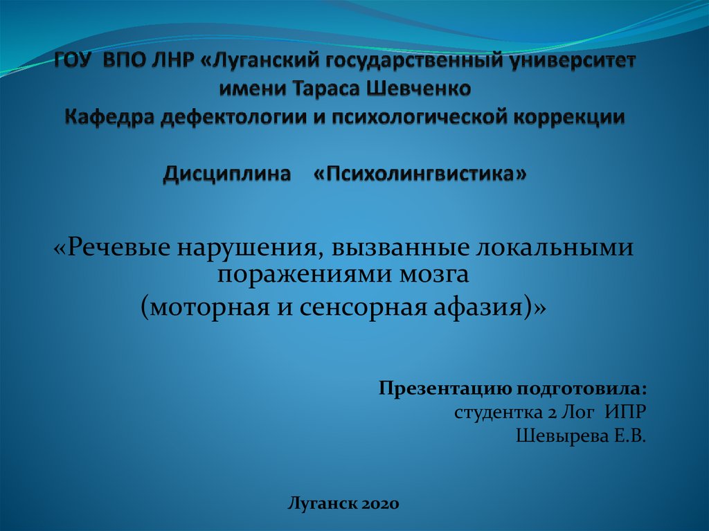 1. ГОУ ВПО ЛНР «Луганский государственный университет имени Тараса Шевченко Кафедра дефектологии и психологической коррекции