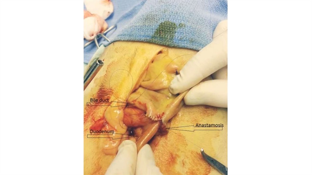 common bile duct re-implantation (choledochoduodenostomy) in a