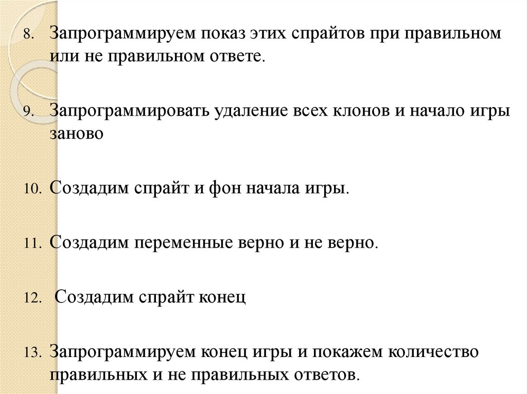 8.Запрограммируем показ этих спрайтов при правильном