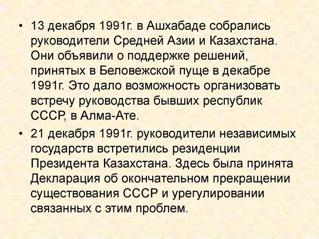 • 13 декабря 1991г. в Ашхабаде собралисьруководители Средней Азии и Казахстана.