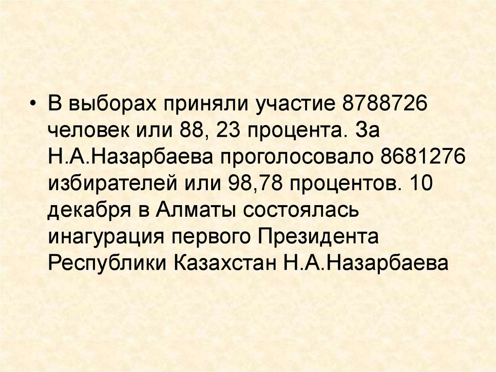 7. 2) Первые всенародные выборы Президента Казахстана.