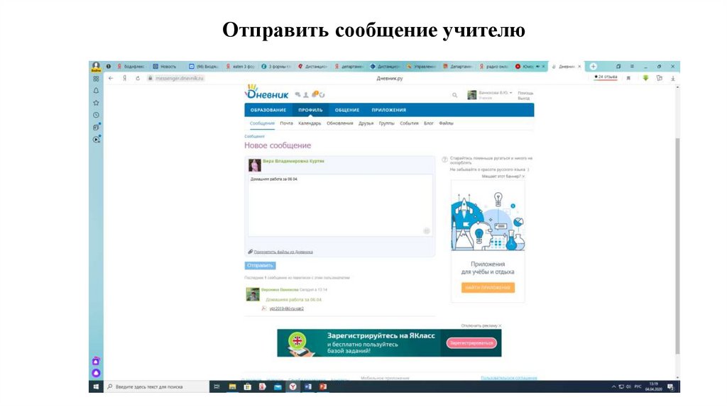 Информация для обучающихся и родителей!Отправляем домашнюю работу
