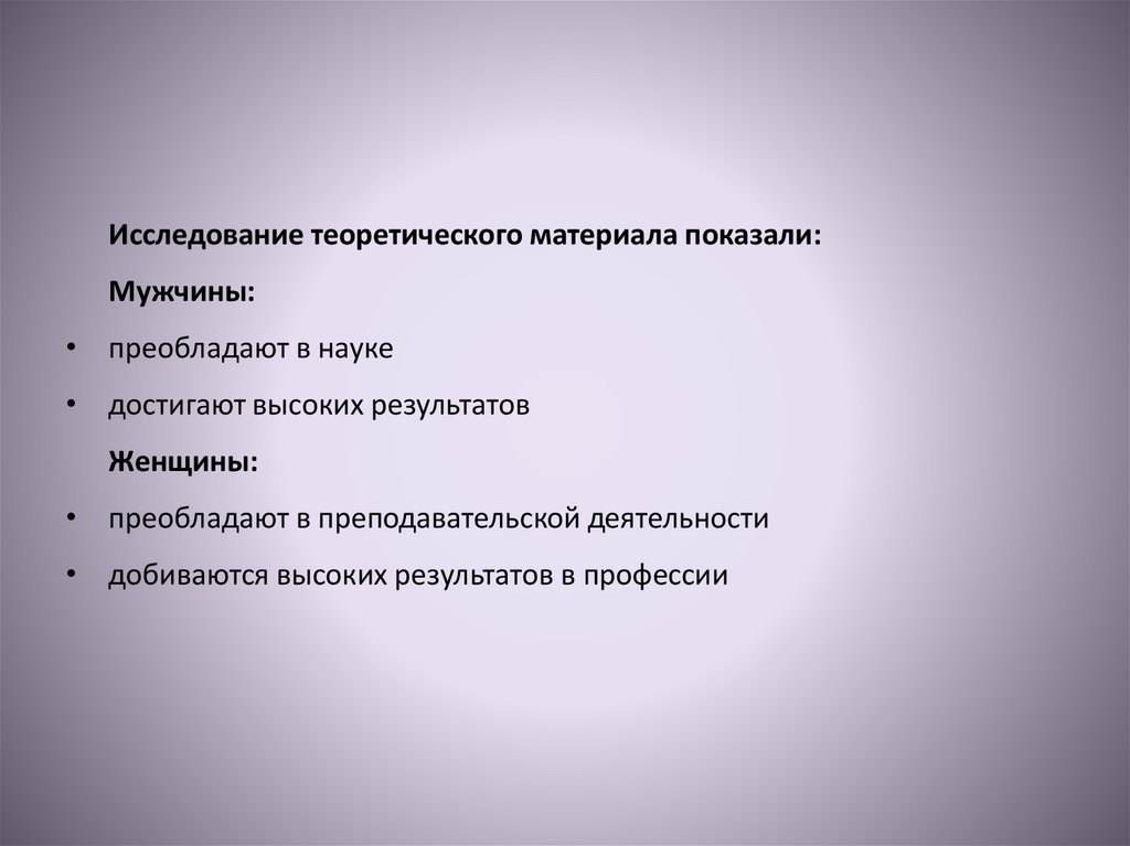 Исследование теоретического материала показали:Мужчины: