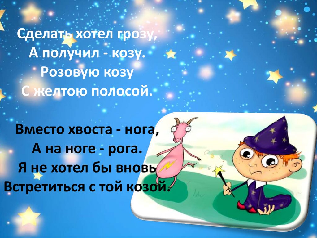 Сделать хотел грозу,А получил - козу.