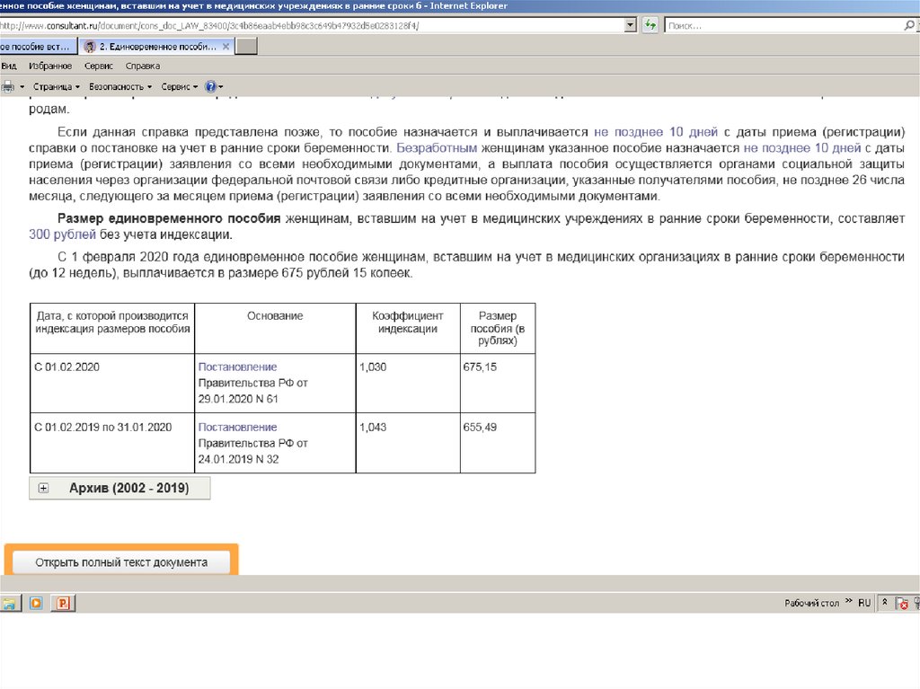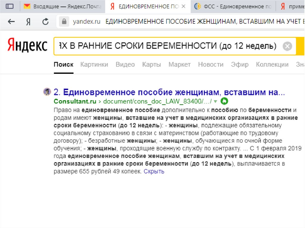 14. 4 Единовременное пособие женщинам, вставшим на учет в женской консультации в ранние сроки беременности (до 12 недель)