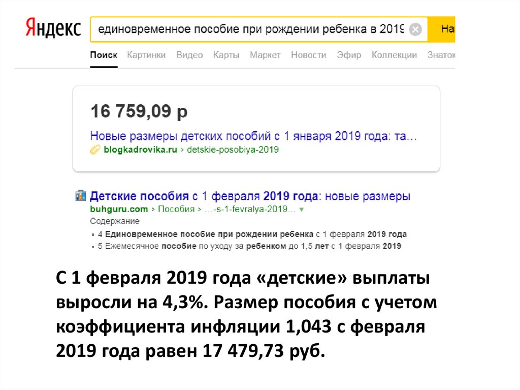 С 1 февраля 2019 года «детские» выплатывыросли на 4,3%. Размер пособия с учетом