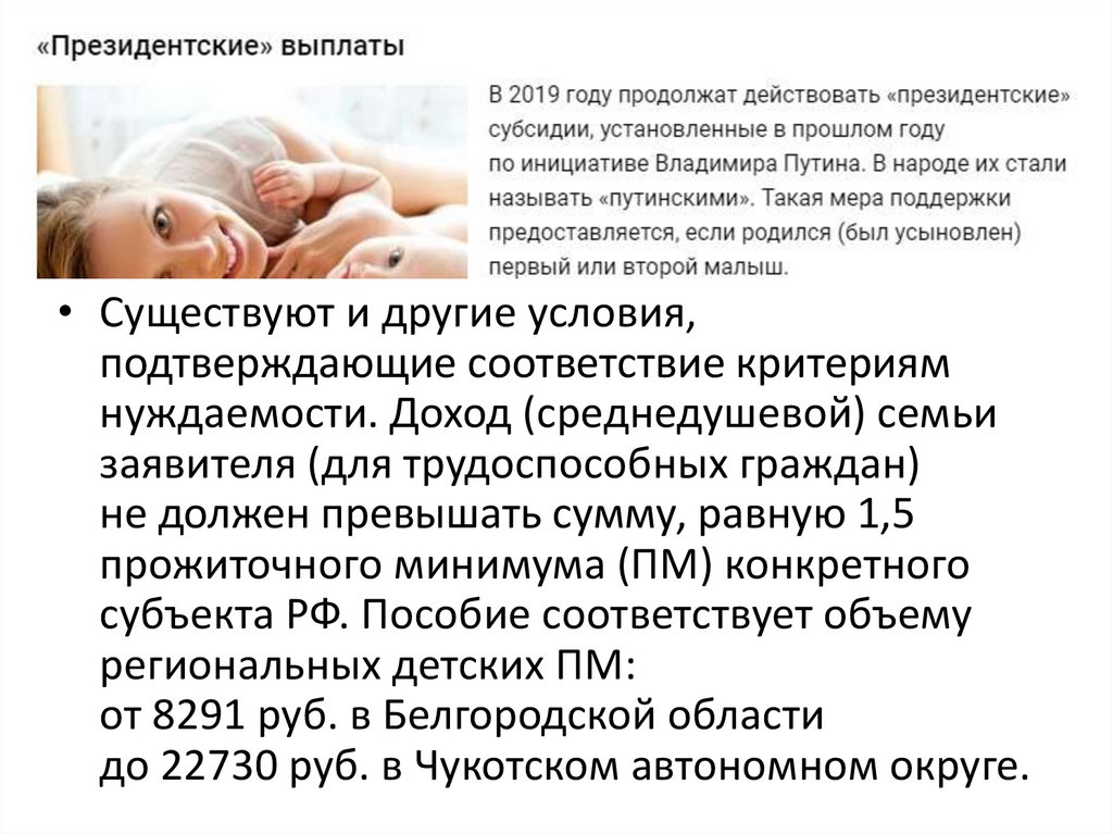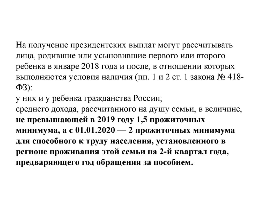 На получение президентских выплат могут рассчитыватьлица, родившие или усыновившие первого или второго