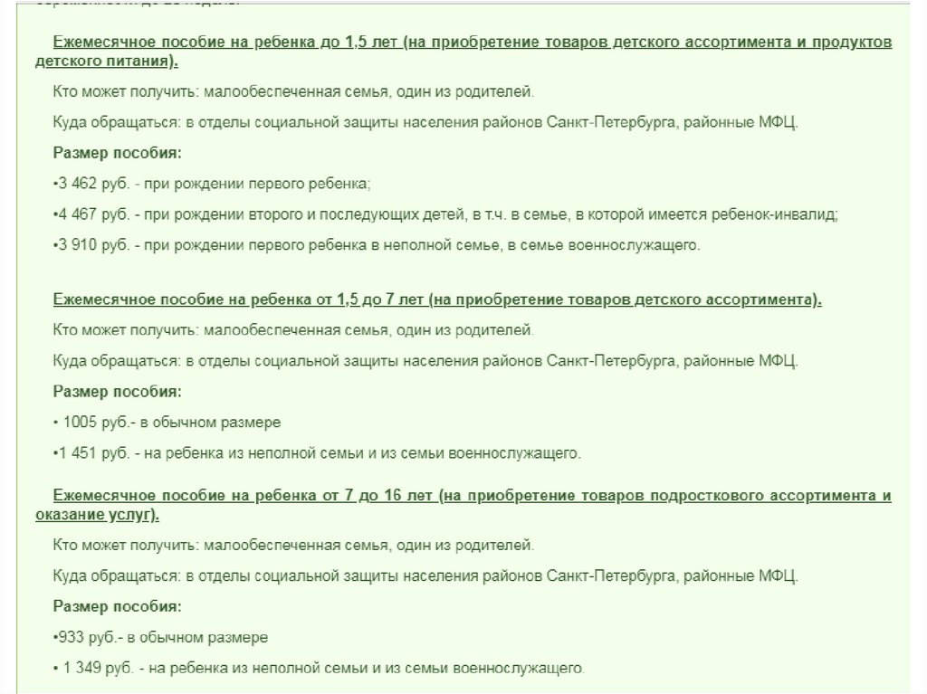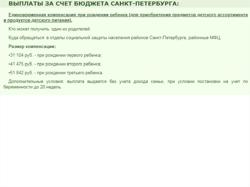 Также закон Санкт-Петербурга предусматривает единовременную денежную