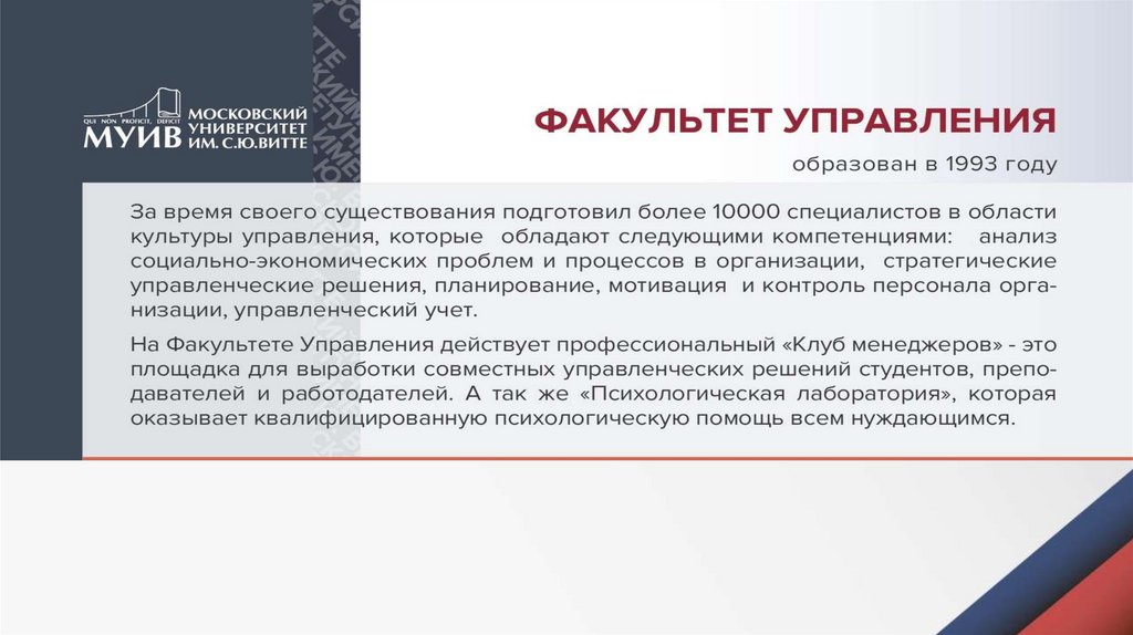 ФАКУЛЬТЕТ УПРАВЛЕНИЯНаправления/профили