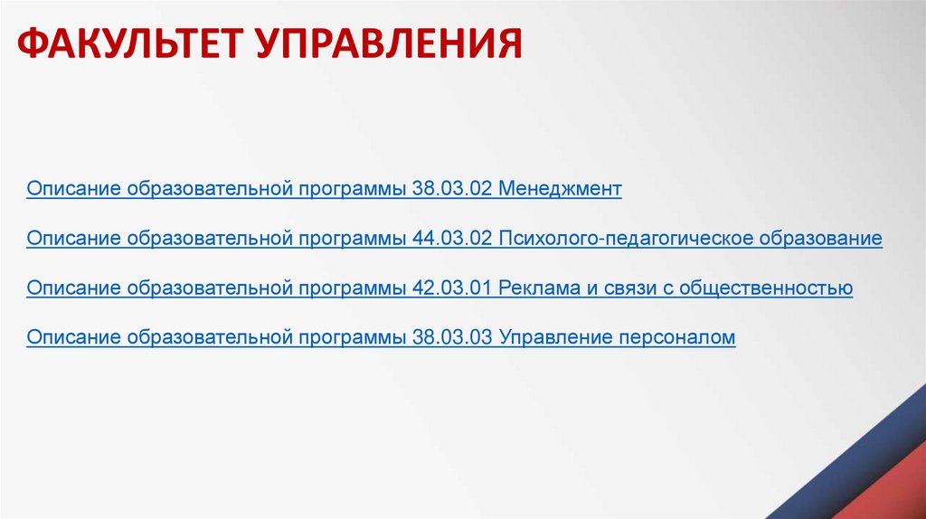 ФАКУЛЬТЕТ УПРАВЛЕНИЯОписание образовательной программы 38.03.02 Менеджмент
