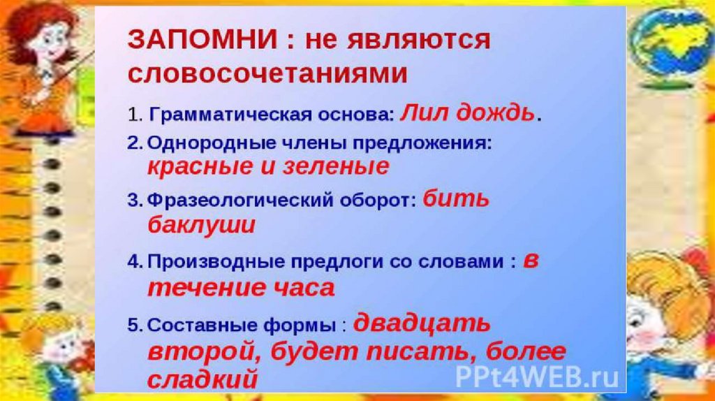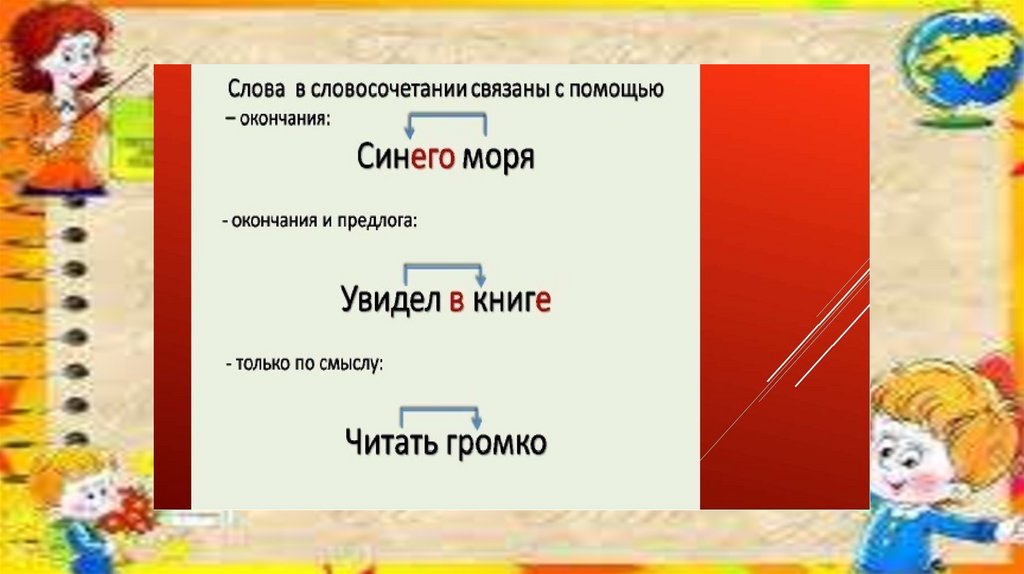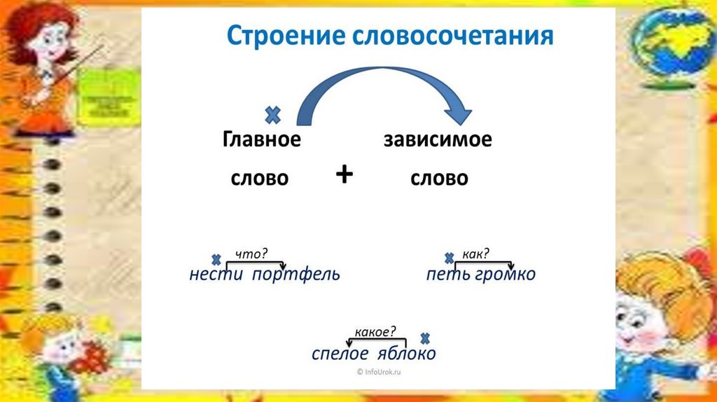 Учимся применять правило:Словосочетание состоит из двух частей: