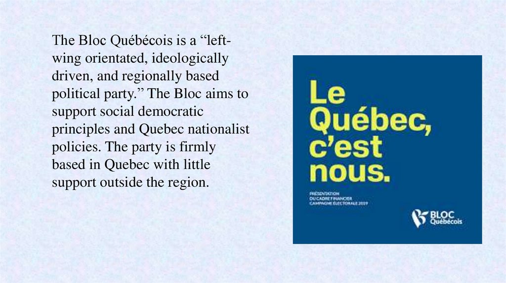 The Bloc Québécois is a “leftwing orientated, ideologicallydriven, and regionally based
