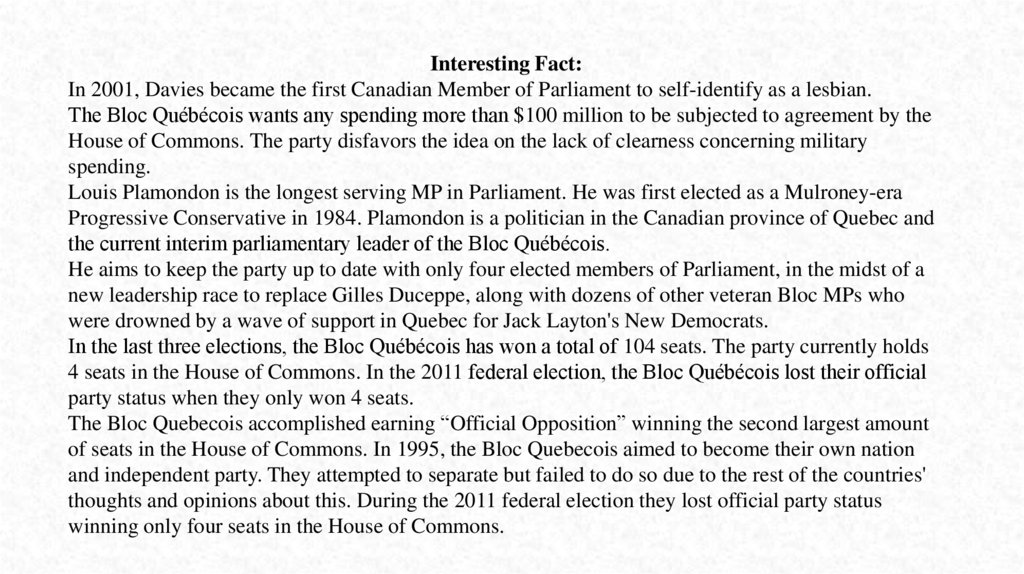 of seats in the House of Commons. In 1995, the Bloc Quebecois aimed to become their own nation