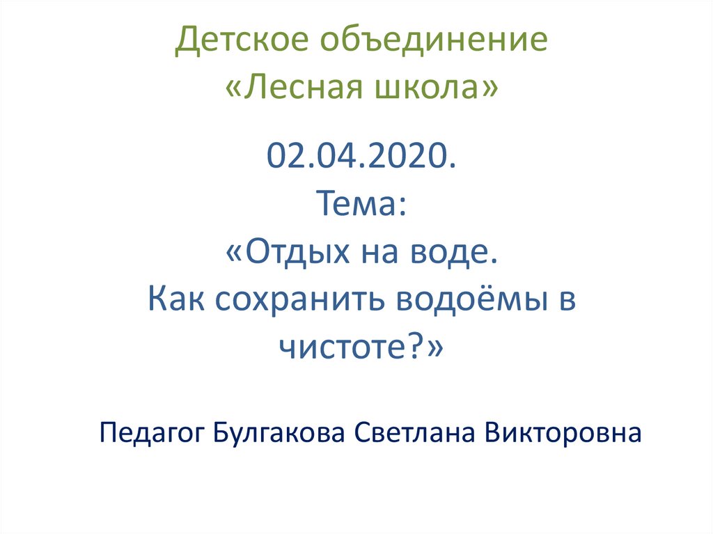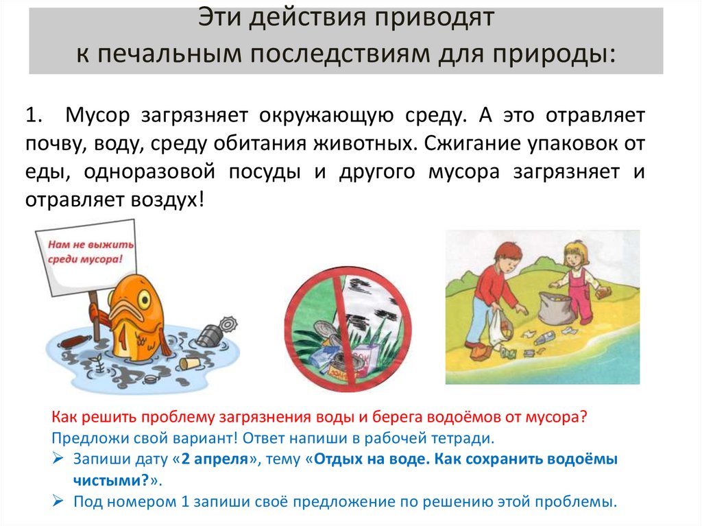 Запиши дату «2 апреля», тему «Отдых на воде. Как сохранить водоёмы