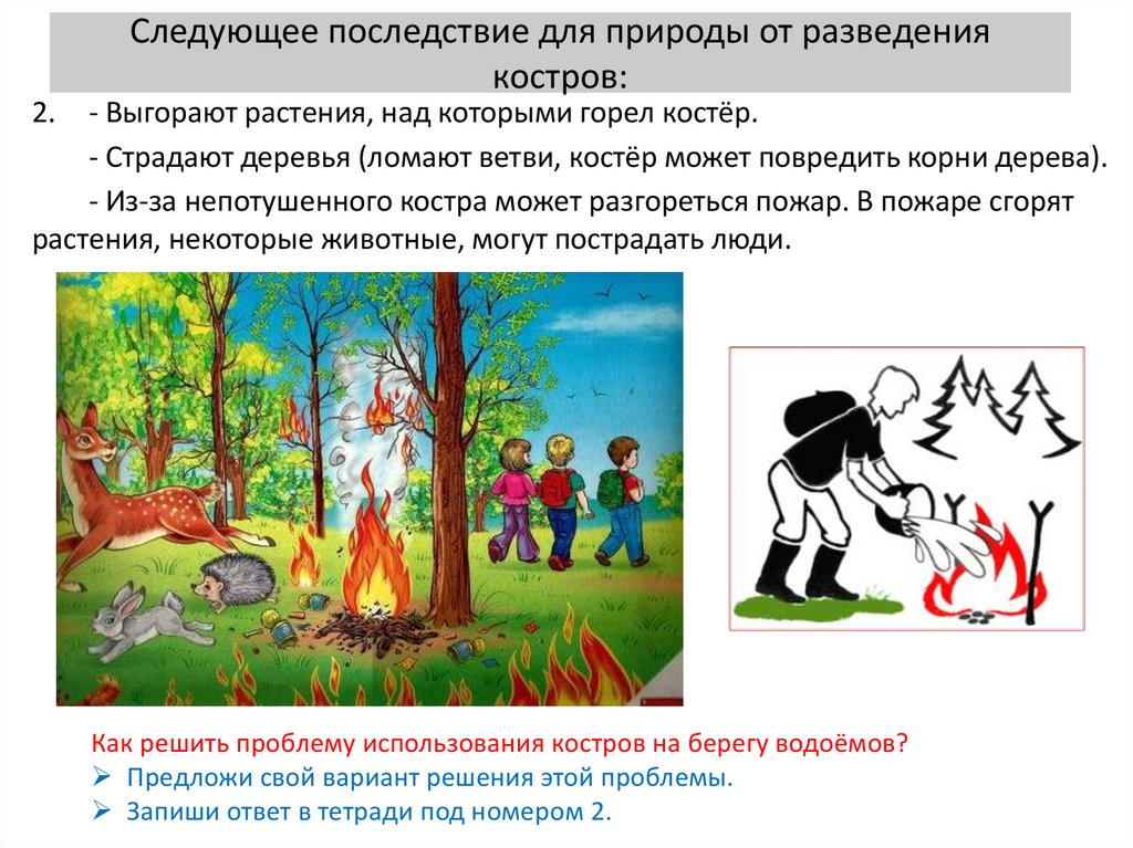 - Из-за непотушенного костра может разгореться пожар. В пожаре сгорят