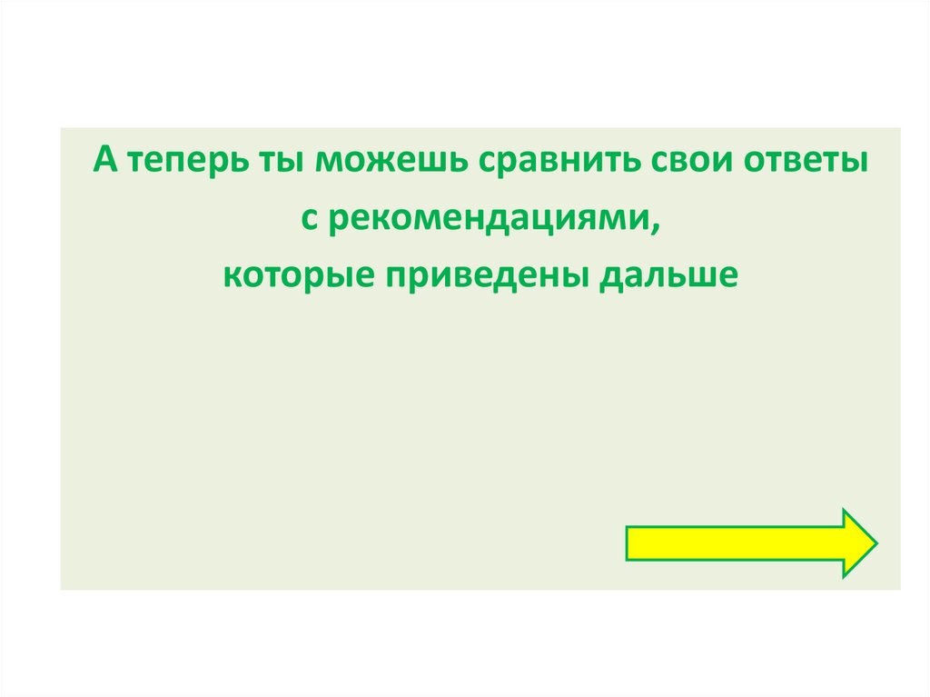 А теперь ты можешь сравнить свои ответыс рекомендациями,