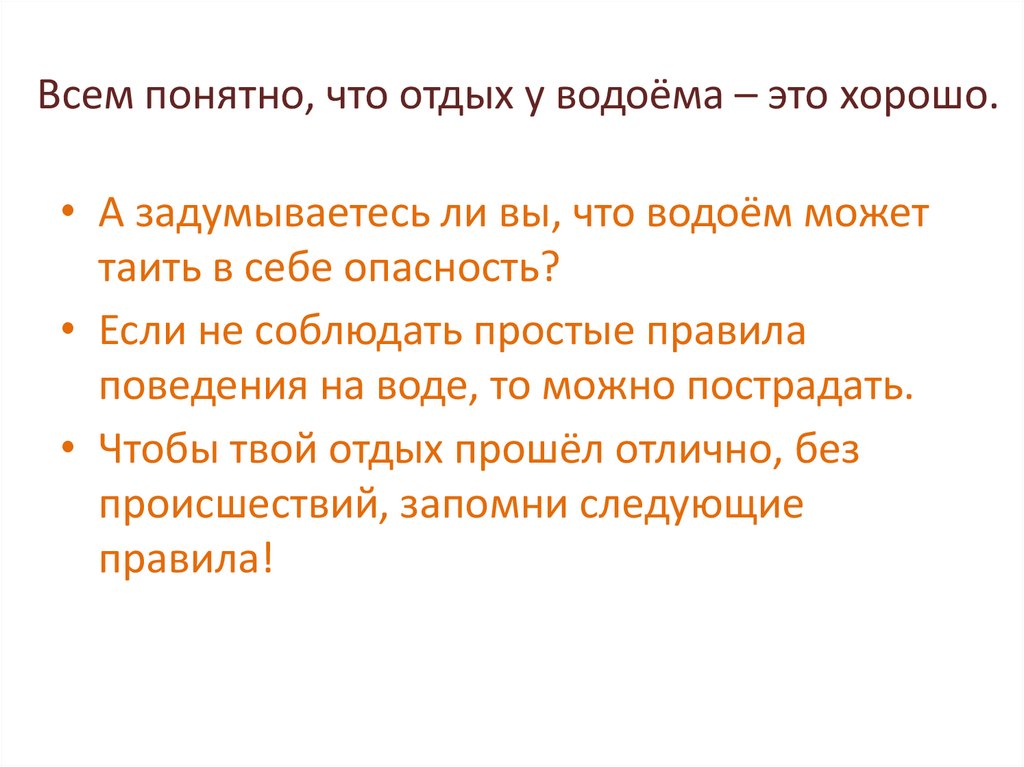 Всем понятно, что отдых у водоёма – это хорошо.• А задумываетесь ли вы, что водоём может